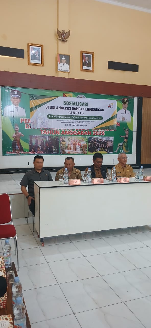 Pada hari Selasa tanggal 11 November 2025 di aula Desa Sekarwangi telah diadakan sosialisasi Studi analisis dampak Lingkungan yang langsung dihadiri oleh kepala Desa Sekarwangi dan Camat Soreang dengan tujuan diadakan nya rapat ini yaitu rencana pembangunan perumahan Gland Seroja Cozylivin.